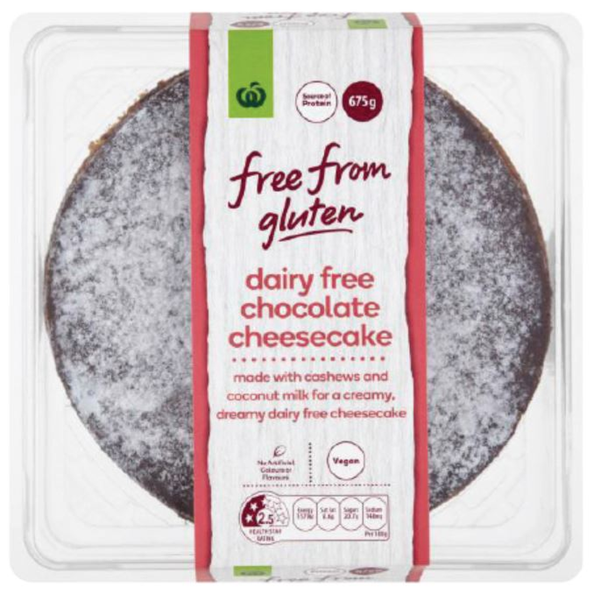 Youtube video by Woolworths TASTE Magazine. Check stock in our stores. Woolworths Free From Gluten Dairy Free Chocolate Cheesecake Made with cashews and coconut milk for a creamy dreamy dairy free cheesecake.